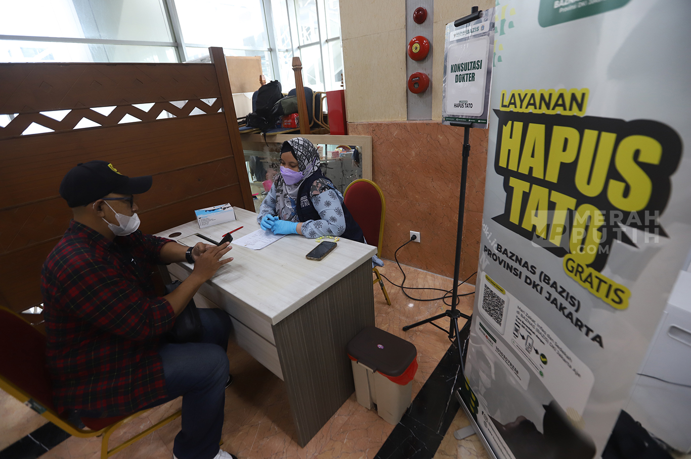 Merahputih.com - Warga saat mengikuti layanan hapus tato gratis saat bulan suci Ramadan 1446 H oleh Baznas DKI Jakarta di Balaikota Jakarta, Selasa (11/3/2025).